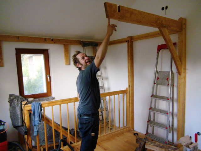 Montage japanischer Raumteiler; vor Ort Aufbau der tragenden Wandkonstruktion