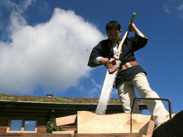 Oberflächenarbeiten am Kasagi mit dem Kanna (japanischer Hobel), Amemiya San.