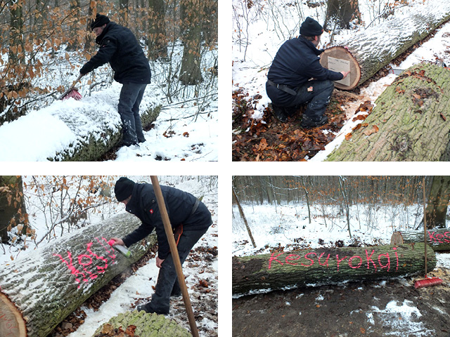 Besprechung und Holzauswahl im städtischen Forst vor Ort im Winter 2017.